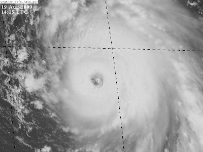 Perfectly symmetrical, deep convective tops that have a temperature of -80C rim the eye of Category 4 Hurricane Bill. All images from http://www.ghcc.msfc.nasa.gov/GOES/