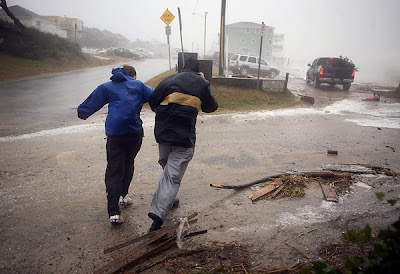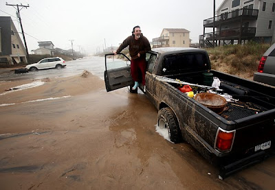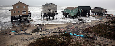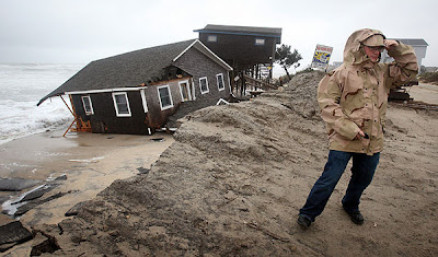 On Saturday morning, another high tide and wave battering, resulted in the collapse of a house at Nags Head, NC and was the third to do so since Thursday. Basically much of the beaches all along the extremely exposed and vunerable Outer Banks recieved severe beach erosion.