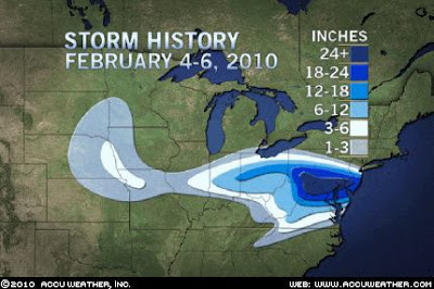 The Baltimore-Washington International Airport, Md., measured 24.8 inches of snow from the storm. That breaks the record for the largest two day snowfall, which was 24.4 inches set back on February 16-17, 2003.
