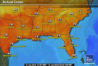 Ok, first of all, I checked out current surface coastal water temperatures were surrounding the Gulf and East Coast all the way to Jersey. It was interesting to see coastal waters now up as warm as 85 degrees at the mouth of Chesapeake Bay, I wonder whether this is accurate, just below this, it’s 75 degrees, so perhaps.. I just thought 85 was pretty warm for only June but indeed strange currents and even a branch off of the Gulf Stream may play a role in making this correct at this locale. It also has been in the 90s in that region around DC and indeed 80s right on the beach there at Ocean City.
