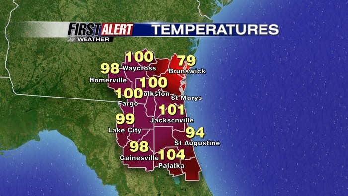 Currently 101 degrees at Jacksonville, FL