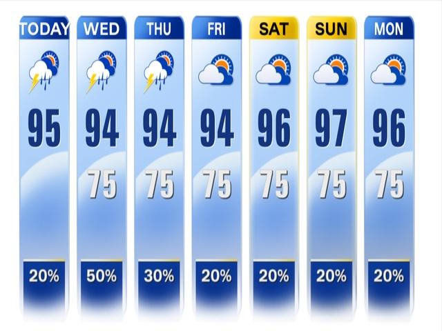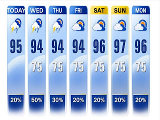 Today the Mid-Atlantic has a high storm chance around the DC to Philly area. Highs range from 95 in DC to Baltimore, around 90 for Philadelphia and north of south Jersey, southeast PA, skies will be only partly cloudy with less styorm risk. Highs will top out at around 83 for New York, perhaps 85 for Newark, NJ and perhaps a comfortable day in Boston with partly cloudy skies and a high around 78. Lows tonight range from the mid-70s in DC, around 70 for New York and mid-60s for Boston.
