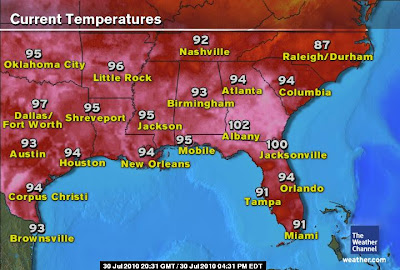 Atlanta, Georgia Currently at 95 degrees, in midst of 12th straight day above 90, 46th day at or above 90 for 2010, Only a mere 25 such days for all of last year!