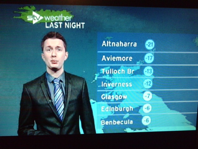 Low: -6 degrees (-21.1C) at Altnaharra (Sutherland)