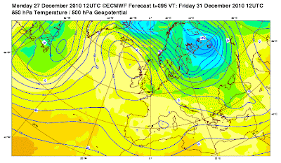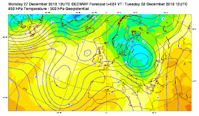 As mentioned in the first line of today’s segment, the more snow can be melted, the less “cooled” those southwest Atlantic winds will be and therefore those 7s and 8s can be felt in such places as Manchester, Glasgow, Newcastle and Edinburgh. In saying that, eastern towns and cities may remain on the cooler side as easterly winds blow in off the North Sea in coming days and thus highs may have a tough time warming to 3-4C but if milder Atlantic air persists and continues eroding the snow and ice across the UK, we should see mild air cover the UK by New Years Day and perhaps into next week.