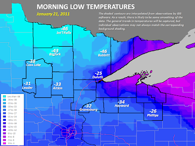 BELOW: Morning lows in the upper Midwest. Courtesy National Weather Service Duluth.