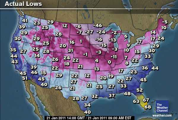 LOW: -46 degrees at International Falls, MN