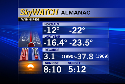 Last month saw the warmest high top -2C and the coldest low -30.9C. The last time Winnipeg has seen an above freezing high was on November 16th, 2010 with a high topping 11.7C!