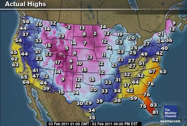 HIGH: 85 degrees at Ft Myers, FL