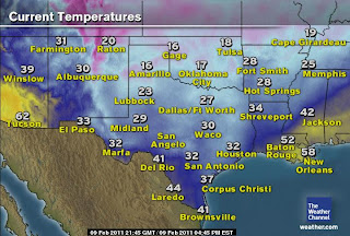 Gone are those 60s, 70s and yes, even low 80s around the Pecos area yesterday! A very powerful Arctic cold front arrived firstly into the Texas Panhandle midmorning yesterday and as it sweeped deeper into the Lone Star State through yesterday, we saw temperatures fall from near 30 through the 20s, 10s and by late afternoon well down into the single digits. But this front was slow enough getting deeper into Texas yesterday holding off long enough across a large chunk of Texas for warm sunshine to do a work on heating up the early February air, in fact as temps dipped to 3 degrees in Amarillo where a howlling northerly was blowing, making it feel like 31 below zero, temps were registering 73 at El Paso and a stunning 82 warm degrees at Pecos!