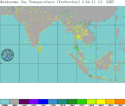 First day of April in the subcontinent. Not bad, with Northern plains in the high 30s and Anantpur in A.P. at 40.6c.