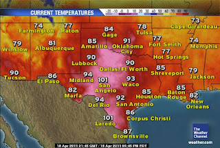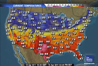 You only have to look at what just occured from the Southern Plains to North Carolina and Virginia in the past 48 hours to see just how extreme the spring weather season is across the US. What’s futher added to it’s wild and fickle moods is the snow which fell and accummulated across the Chicagoland area this morning (Article). While today may struggle to see 40s and 50s across the north, 90s and even low 100s will roast Texas. The snow is a good reminder as to how much chill remains over the North, in fact you only need to glance at the current temperature chart across the lower 48 to see the very warm air to the south and very chilly air across the north. This is the major problem with all this very actice weather we’re seeing. Those large contrasting air masses is what is intenifying the Pacific jet and the storms in which ride along it.