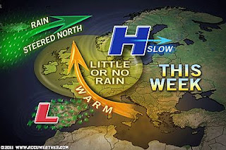 Since Tuesday, everyday has topped 24C somewhere and that’s above the average for even midsummer. Quite amazing considering it’s only April and last year we saw high’s at time struggle to reach 3 or 4C in places with harsh frosts and even snow. Remember the Iceland volcano problems? That was last April and the whole problem came because of a strong northwest wind blowing over Britain which pulled all the ash down from Iceland. If that happened now, well all the ash would have went north towards Greenland and the North Pole and then likely dropped down into eastern Europe where they have been persistently cool, rainy with heavy mountain snows as far south as Turkey.