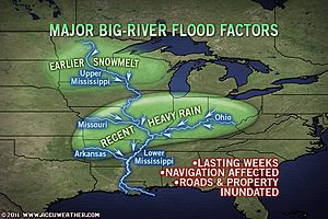 Strong/Severe Thunderstorms ‘train’ over and over the same areas, increasing the flooding throughout the Ohio & Mississippi Rivers