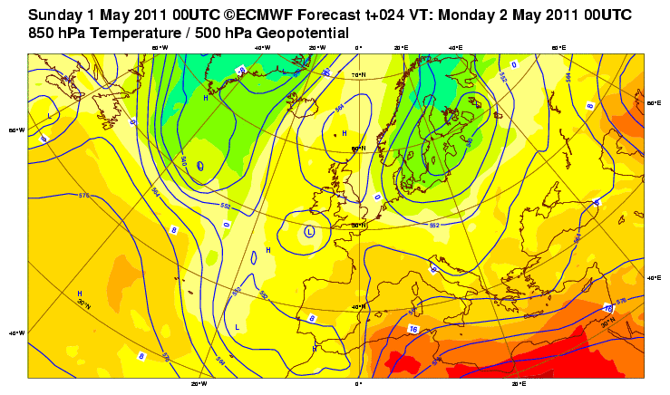 With it’s relatively strong 564mb centre off Norway (east of Shetland) and an upper low centered over the northern Bay of Biscay, NW France, this aligns a strong east/northeast flow which will bring a blustery weekend throughout the UK but the chillier temperatures will be restricted to the North Sea coast and only inland areas exposed to the open sea. The reason is the pressure heights are strong enough that the air warms faster than the winds cool it, thus though gusty winds are likely for many, it will still be warm.. Only North Sea coastal areas may struggle to reach 10C (50F). Elsewhere, from London to Inverness, it’s all about the warm, glorious sunshine despite windy conditions that could well be strong enough to rock around high profile vehicles travelling north-south and possibly raise high wind warnings on some bridges such as the north-south facing Forth and Tay Road Bridges. Expect a uniform 17 to 20C surface temperature profile across most of inland Britain and because there won’t be a westerly onshore wind, the immediate west coast seaside towns may get to be just as warm as the sheltered inland areas with 20, even 21C in such places as Blackpool, Ayr and Oban and all points in between.