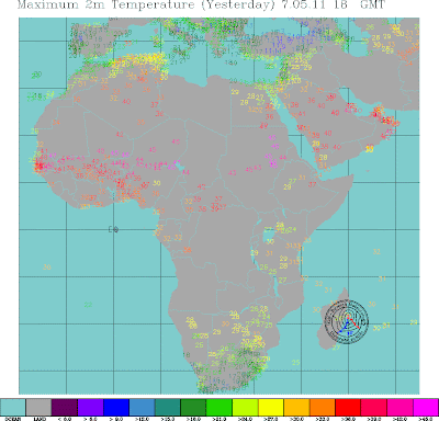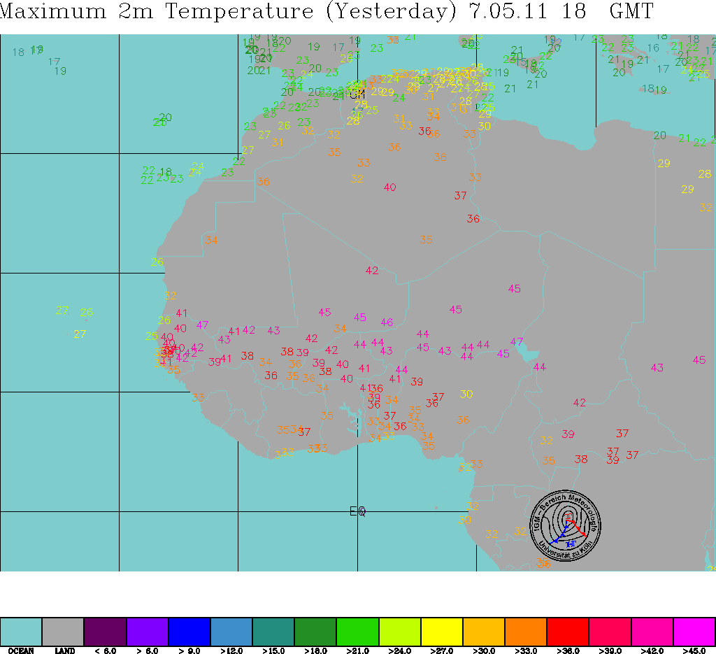 First 49C shows up across African Sahel yesterday while multiple 47sC show up today