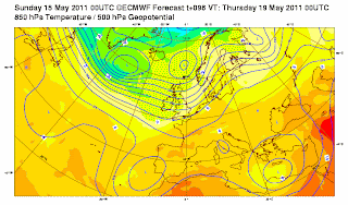 While here in Scotland it remains cool, breezy, showery and downright rotten, we have cool conditions stretching all the way down into southern areas of the UK, northern France and across into the Low Countries thanks to the trough over NW Europe, but change is on the way for the better.