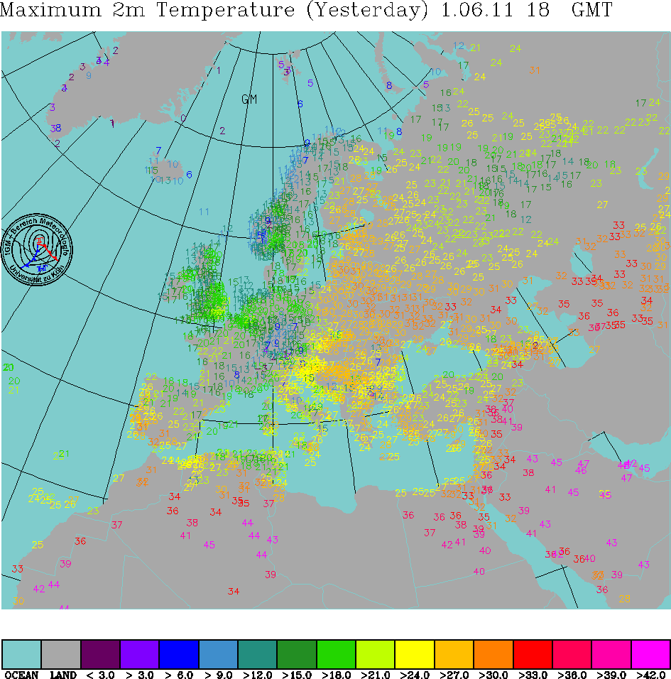 Heat starts across Scotland tomorrow with places reaching 21-24C. Sharp drop in temp across Germany and western Poland which allows Scotland to heat up
