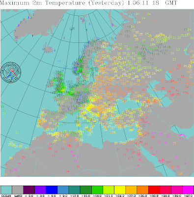 As for England, well tomorrow should see 25 or 26C around Greater London and Friday may well see 27 or 28C.