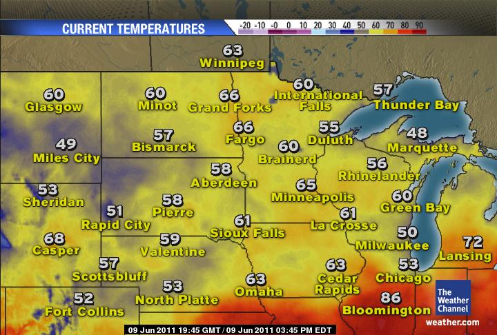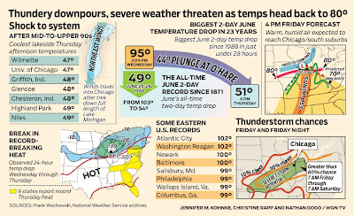 – 45° drop at Chicago, IL, largest June 24-hour temp drop in 24 hours in 23 years!
