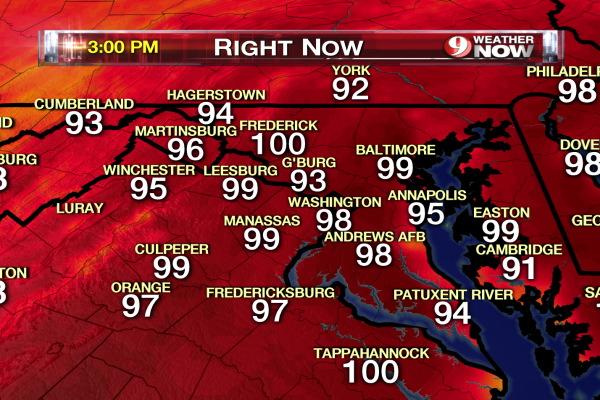 Crazy Thunderstorms Rage around hot high pressure which is sending temps towards 100° from DC to Philadelphia right now!
