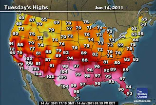 Here below is a graphic of foprecast highs from The Weather Channel. As you can see the Northeast has a cool, refreshing air mass in place thanks to a trough and low over the region as is dipicted by the graphic at the top of this segment.