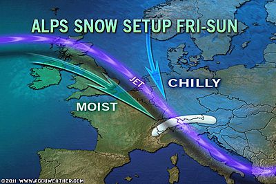 UK Chill to ease over weekend, shifts into heart of continent bringing snow to Alps. Remaining unsettled through next week and beyond