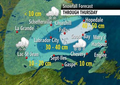 Winter Storm which impacted Ontario, Quebec last night to impact Labrador and Atlantic Canada tonight