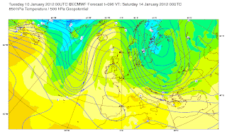 So, while we may remain up and down, the warm days are up for Scandinavia south into Poland, Ukraine, Rusia and even south. This trough and large cold circulation will feed increasingly colder air into Europe from Siberia and I believe this expanding cold pool will migrate westwards into the UK and Ireland, covering us by January 20th onwards.
