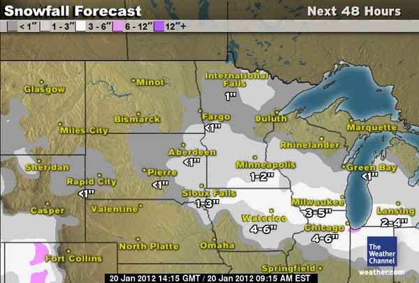 2-8 inch swath of snow to fall from Iowa to Massachussetts, including NYC, possibly Philly