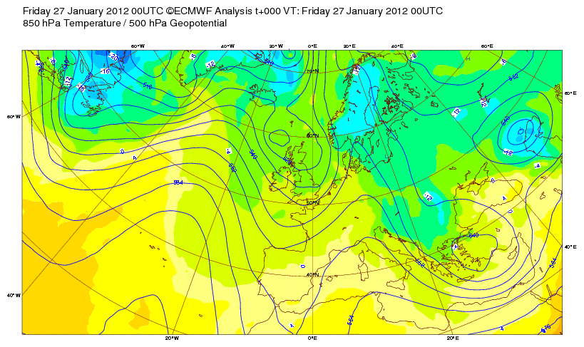 By Sunday, the pressures drop enough over the western UK which will allow the stalled front offshore to the west to push in, however, with cold air in place over the UK, it’s possible that a period of snow preceeds a turn to milder air but there is a lot of uncertainly over the scenario justnow. Shall keep you posted tomorrow.
