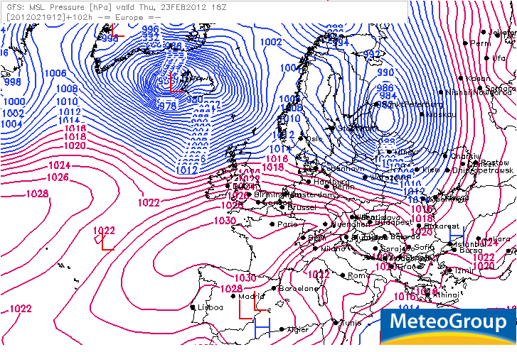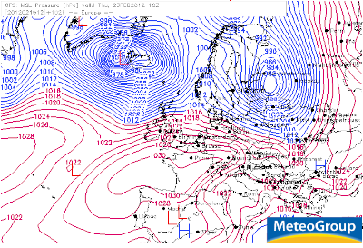 Look at the 2nd chart above, notice the heights are fairly strong over southern England. Around that core centered near Britany means southwest winds in the upper levels blow from the Azores to the Midlands. There is also a surface high which is centered just to the upper high’s south according to the GFS model (see chart below) which also shows southwest winds (at the surface) blowing from near the Azores to southern England, what’s this mean? Well, southwest winds blowing at all levels of the atmosphere from a southwest direction means very mild air is coming and milder than what we’ve seen in the past few weeks. Recall back to Christmas when it got to 15C at Aboyne, Aberdeenshire? Well that was during the darkest period of winter. Now, at this late stage of winter, the sun angle is higher and that means, the solar energy reaching the surface is greater. Stronger energy penetrating the ground means, greater warming of the air right?