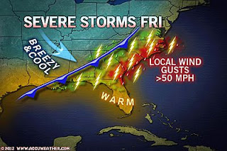 SEVERE WEATHER WARNING: A STRONG COLD FRONT WILL SWEEP INTO THE CAROLINAS, VIRGINIA LATER TODAY PUSHING INTO VERY WARM, HUMID AIR AND THIS IS LIKELY TO SPARK STRONG TO SEVERE STORMS, KEEP CHECKING BACK!