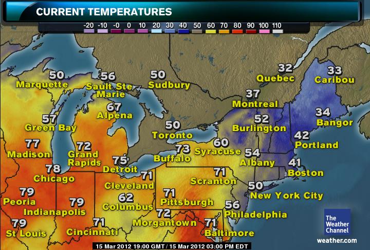 Dense, cold ocean air floods same areas of the I-95 corridor which were in the 70s yesterday! DC now in the 80s and south of backdoor front.