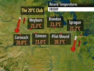 The Weather Network are forecasting a high of 28C (82F) in Winnipeg, MN today, yes 28C! The normal is 0C (32F)