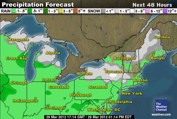 Snow, Yes Snow from Nrn Great Lakes to New England