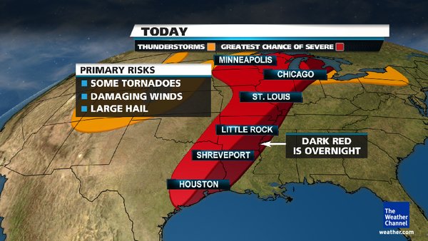 More Severe Storms Today, Risk Area Slides East, Watch Out From E Texas Up To E. Minnesota & All Of Wisc (Detailed Explaination To Atmospheric Set-Up)