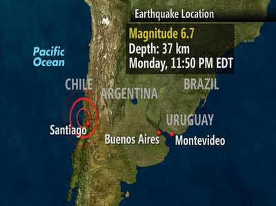 Magnitude 6.7 Earthquake Strikes Off Valparaiso, Chile