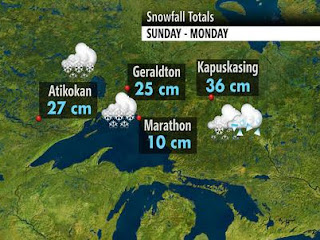 Blizzard Over Northern Ontario While It Was In Upper 20s C Along With Damaging Winds in Southern Ontario, 28.9C In Montreal, 31.4C At St Anicet, QC