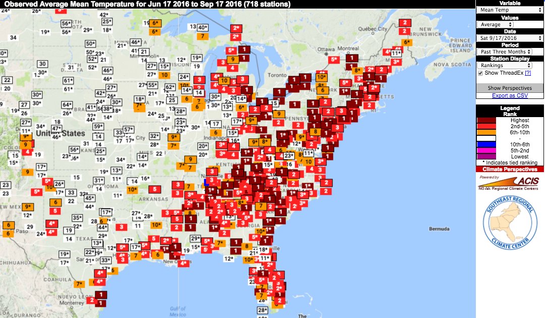 September 2016 will go down as a very warm month following one of the warmest summer’s on record. For the East, September has been a fourth month of summer with frequent 80 and 90 degree days, adding to an already large number accumulated during the 90 days of summer.